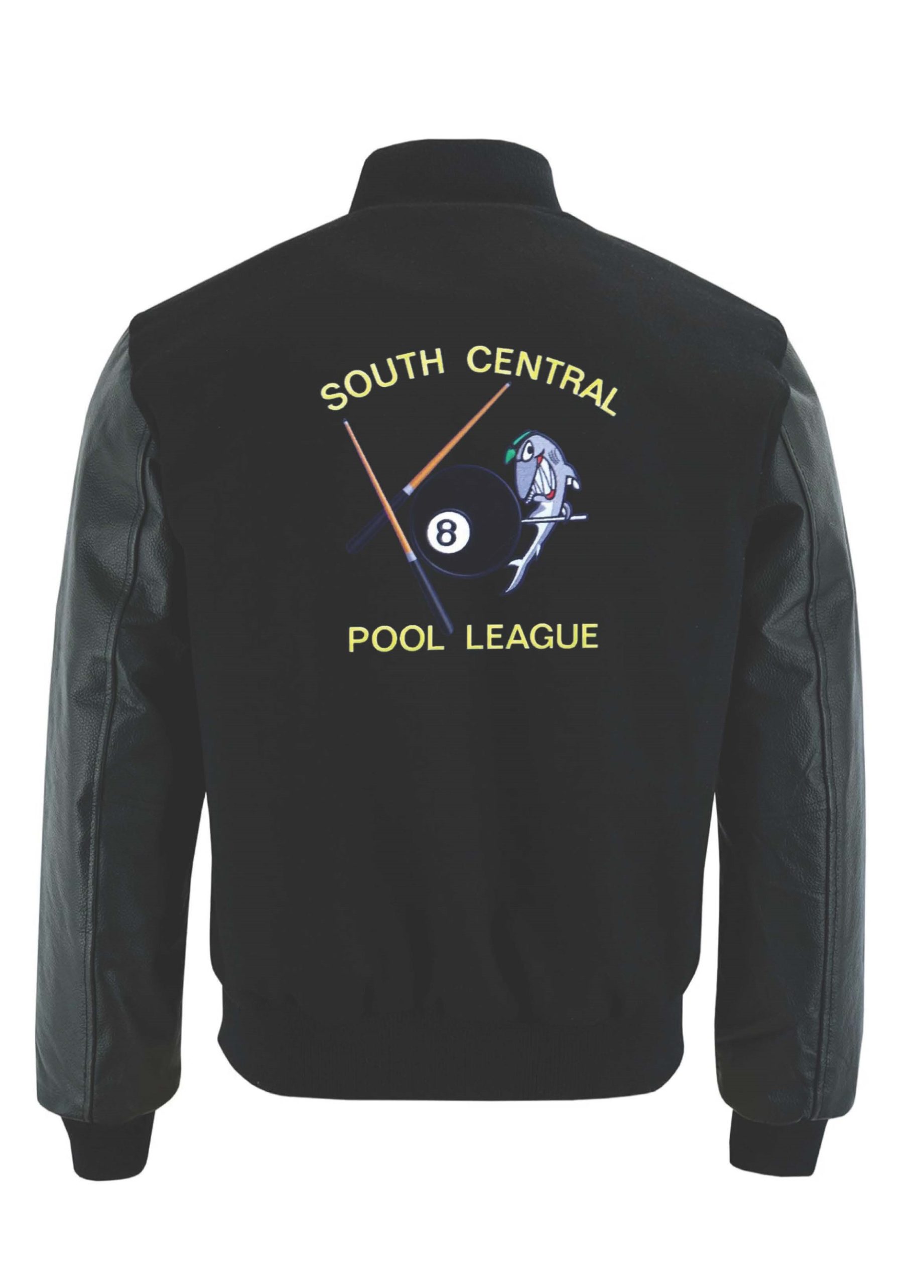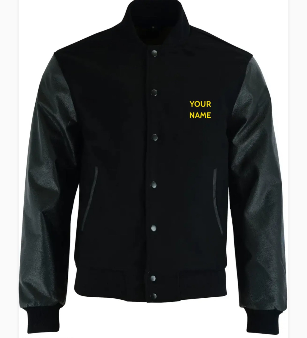 It is a letterman jacket with wool body and leather sleeves. Design is embroidered.